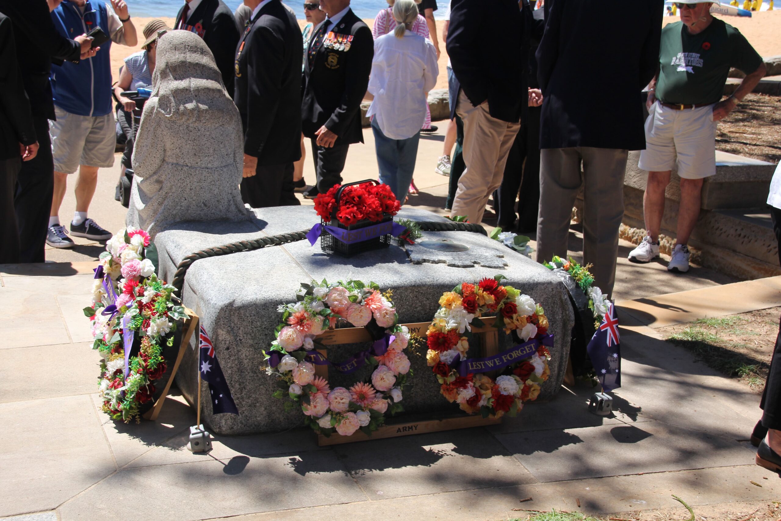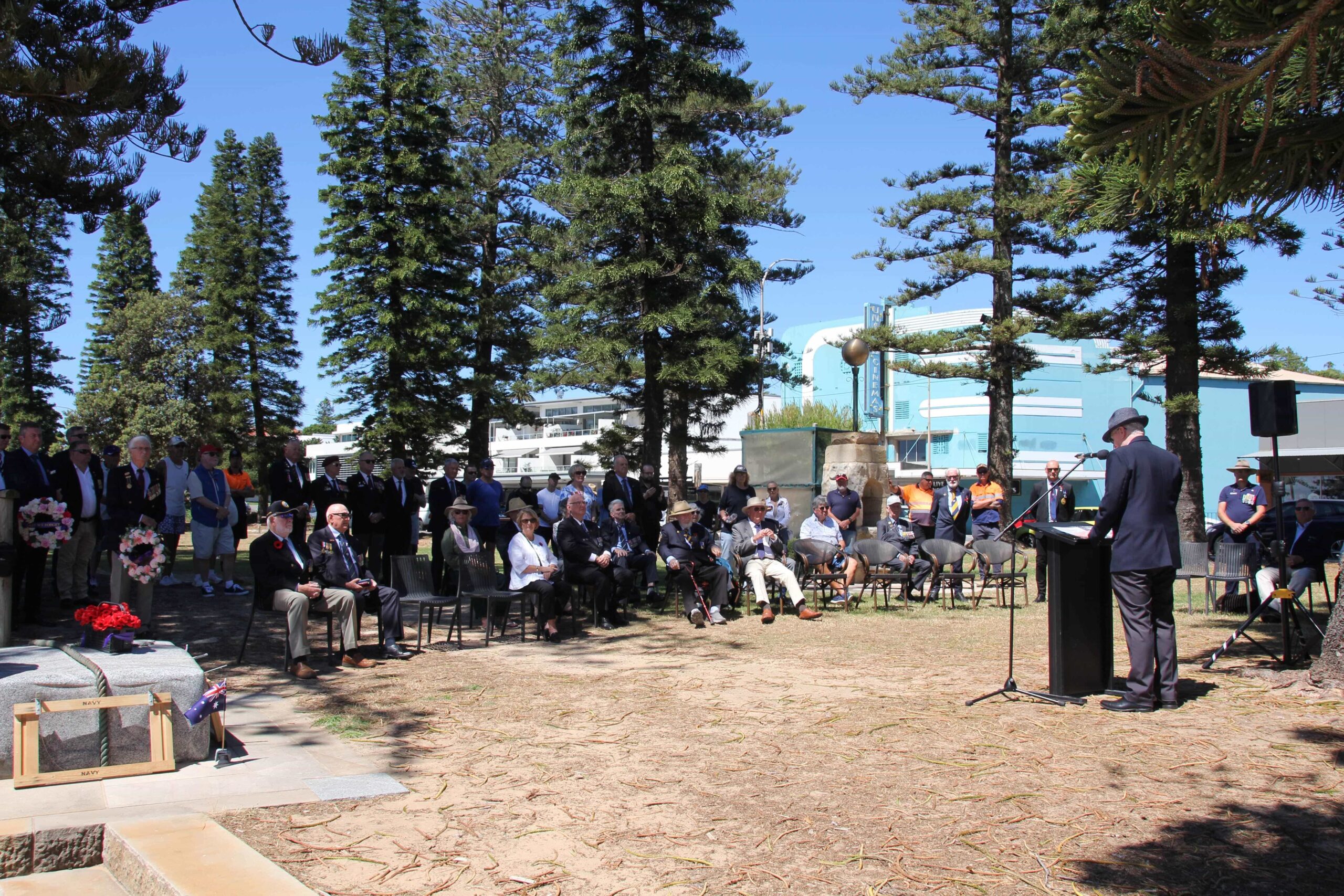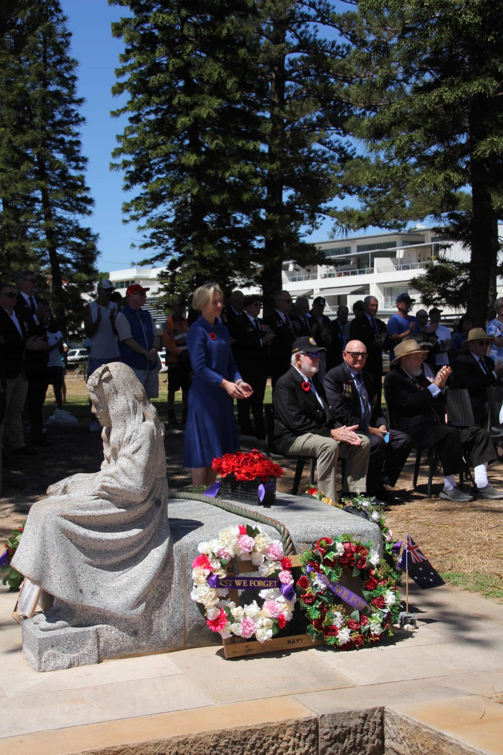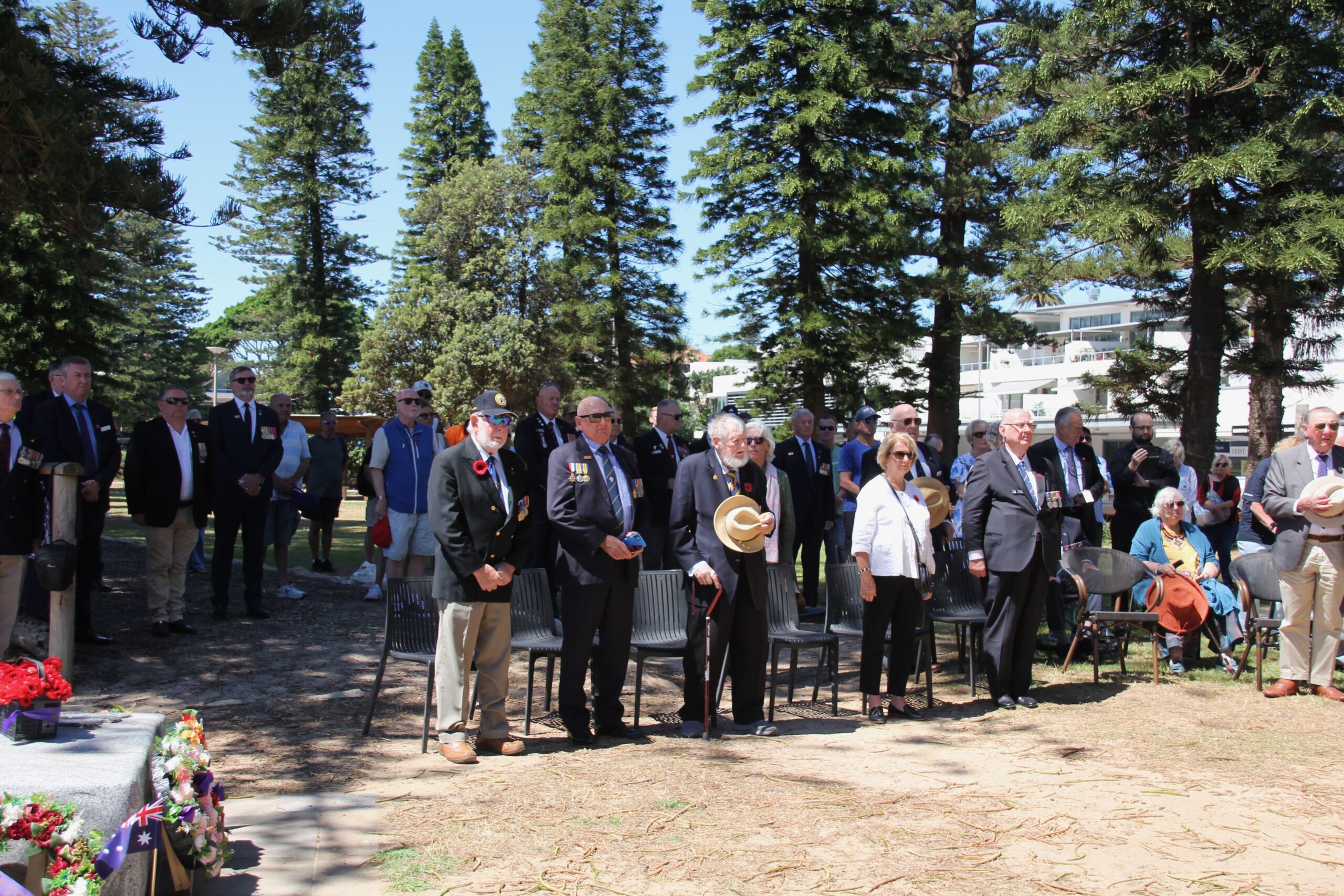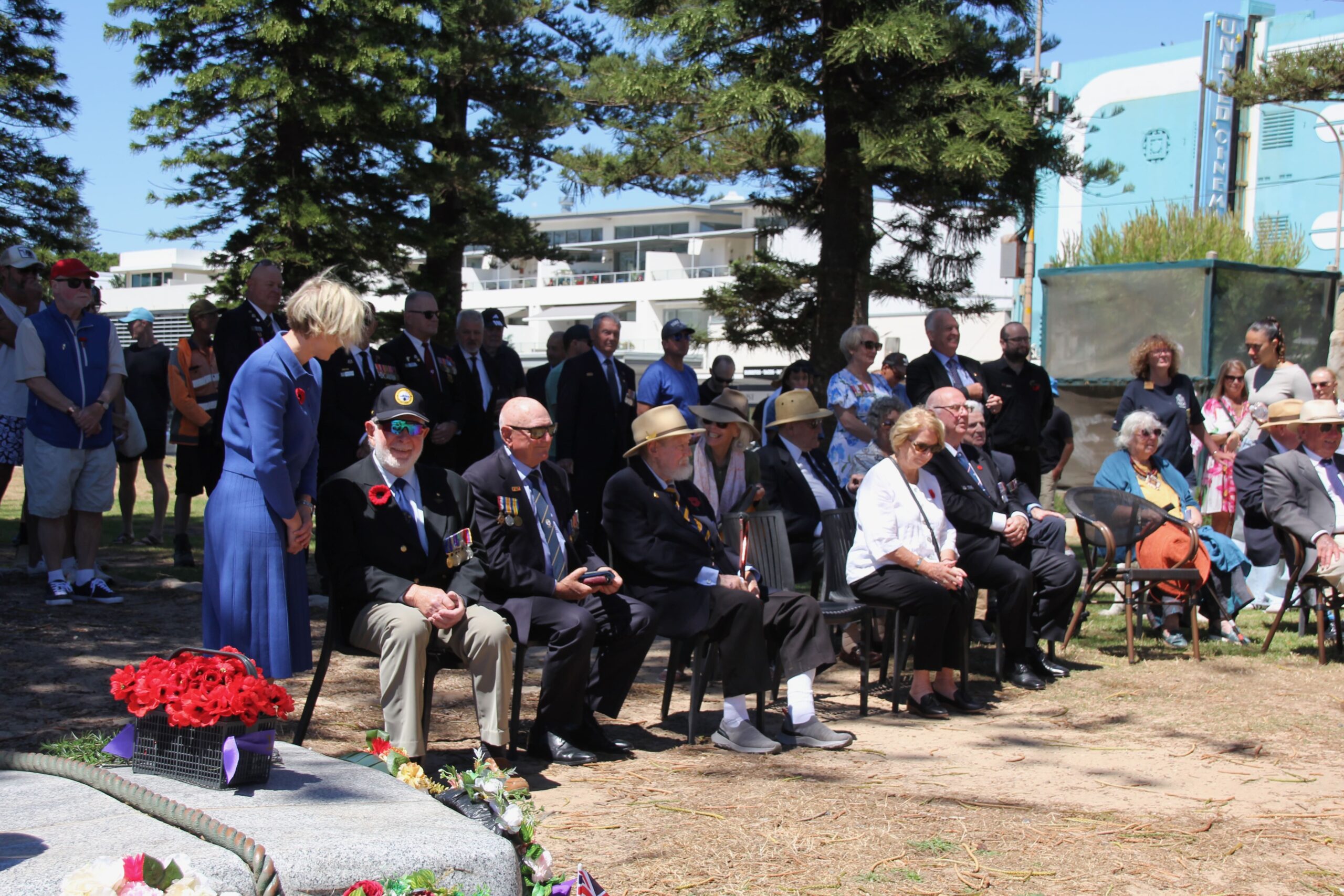 A representative from the local cadet unit gives a speech to the assembled parade and spectators. This is followed by the laying of the wreath at sea by the Collaroy SLSC Boat with oars raised. The club’s directors and managers provide assistance for veterans onto and off the beach.