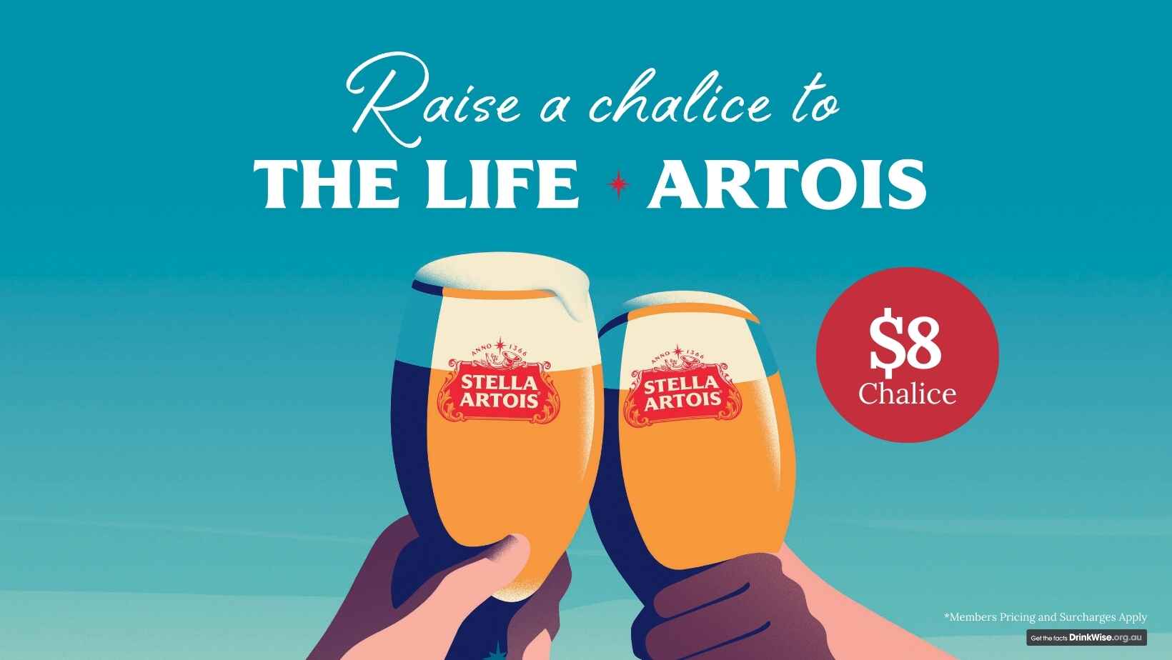 Finish Summer off in style with this incredible Member’s offer. Enjoy a Chalice of Stella Artois for just $8. Cheers!