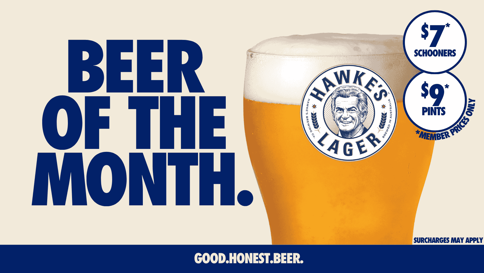 We have teamed up with Hawkes Brewery in April to deliver more bang for your buck. Enjoy a delicious lager on tap in Horizon Lounge for Members. $9 Pints / $7 Schooners.